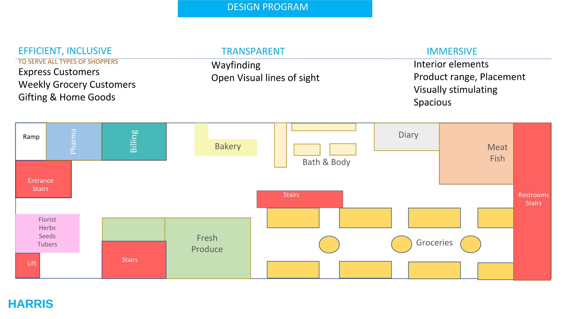 Extensive retail research and user-flow studies informed the concept. The resulting design incorporates evidence-based guidelines—from circulation patterns to merchandising zones—ensuring a smooth shopping experience and efficient operations, as illustrated in the accompanying slides.